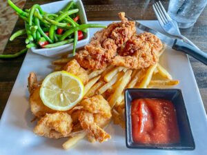I had shrimp and tenders with fries and green beans.